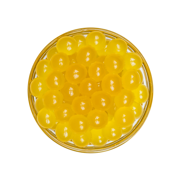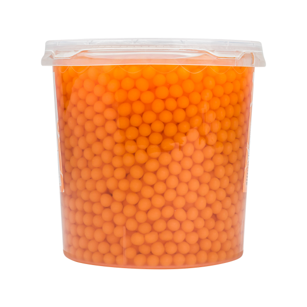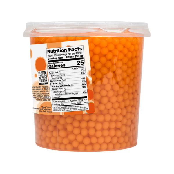 Tea Zone Cantaloupe Popping Pearls, also known as Bursting Boba, are juicy balls of Cantaloupe melon flavor that pop in your mouth when consumed. The outer layer of the popping boba is made from seaweed extract, which makes this topping caffeine-free and vegetarian. Add this sun-ripened bursting boba as a special garnish to your summer beverage, cocktails, or dessert to make them look more appealing to your customers.