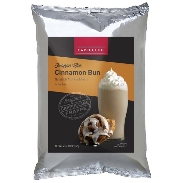 Cappuccine Cinnamon Bun Frappe Mix provides you with the rich delicious taste of a cinnamon roll, but in a frappe mix form.