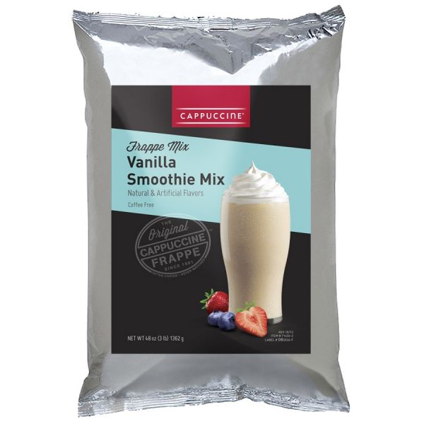 The Original Cappuccine Frappe is the perfect solution for any busy specialty beverage environment. Extremely simple to make, our famous powdered frappe mix can be used to prepare frozen, over ice or hot beverages and is unmatched for flexibility, efficiency and taste. Cappuccine Vanilla Frost Smoothie Base mix offers a remarkably rich and creamy base. Add fresh fruit or juice for the perfect smoothie!
