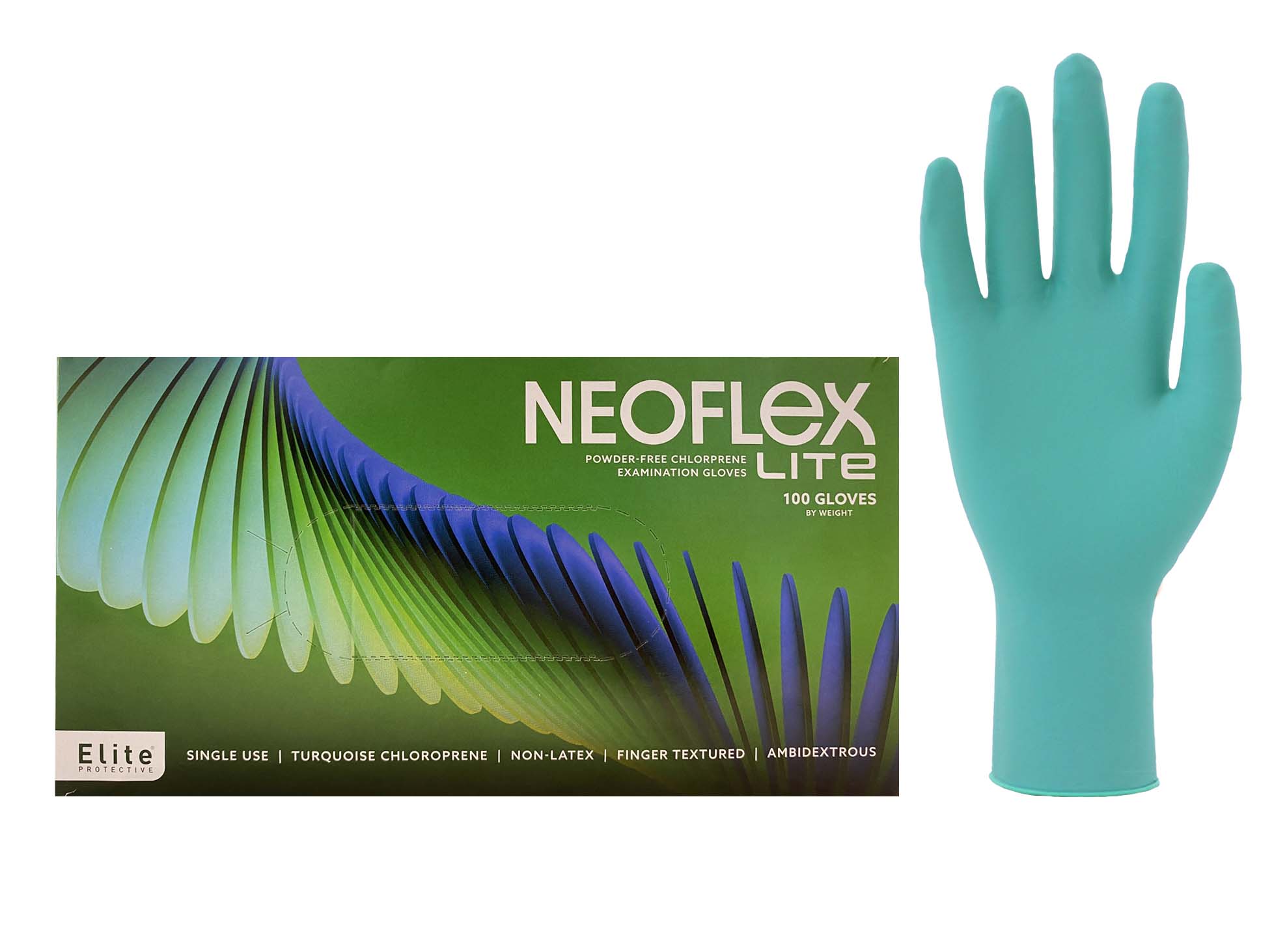 Elite Neoflex Lite, Green, Exam Grade, Powder-Free, Textured, 100 gloves/box [size: XS-XL]