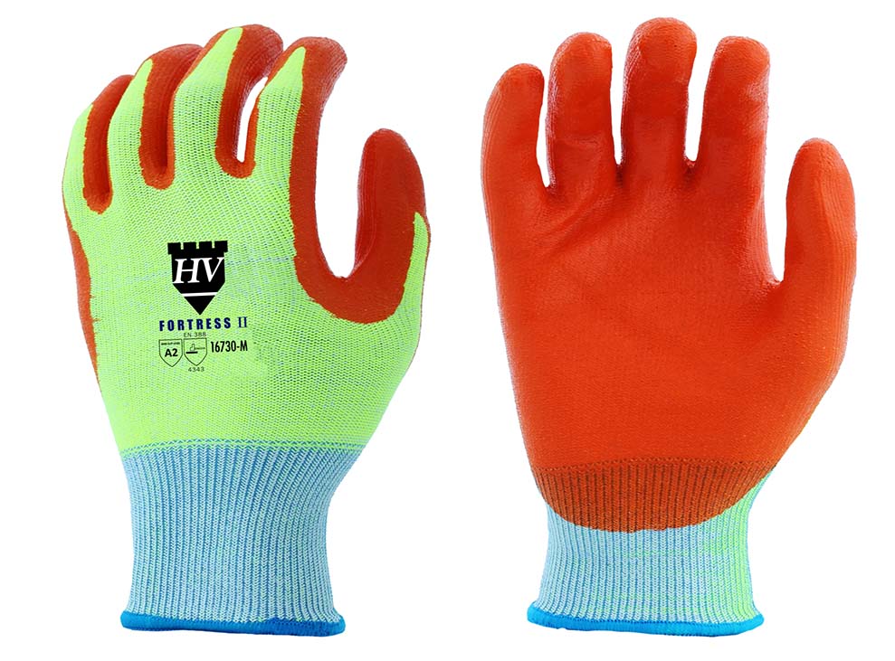Fortress II HV®, Orange NBR Coated Palm, Yellow HPPE Fiber Liner, ANSI A2, CE 4343 [size: M-XXL]