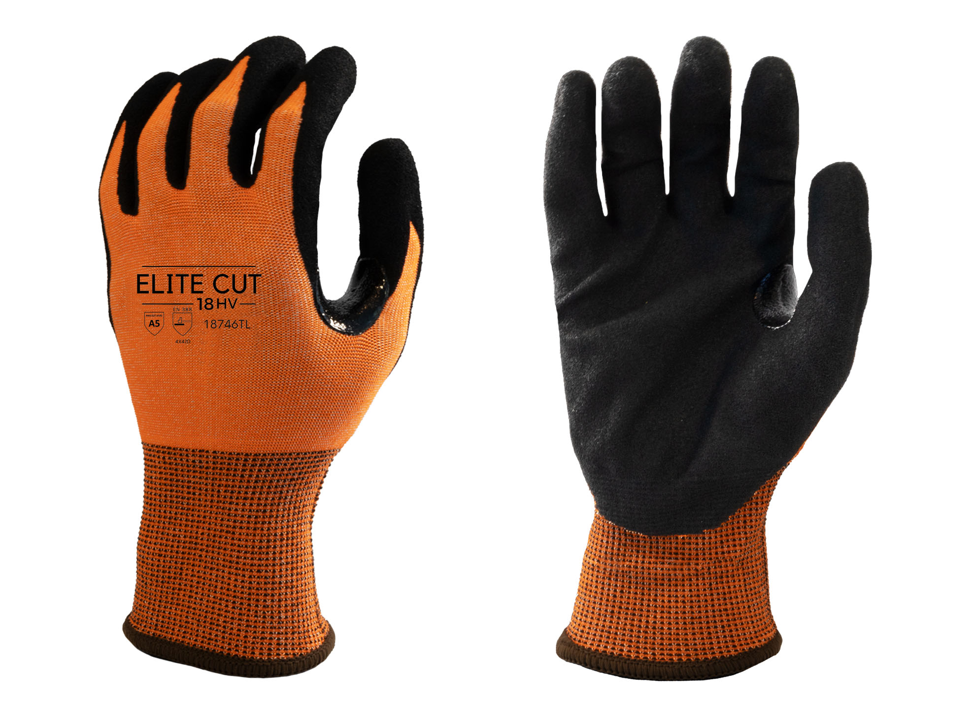 Elite Cut 18HV®, Foam Nitrile Coated Palm, Orange HPPE Fiber Liner, 18 Gauge, ANSI A5 [size: S-XL]