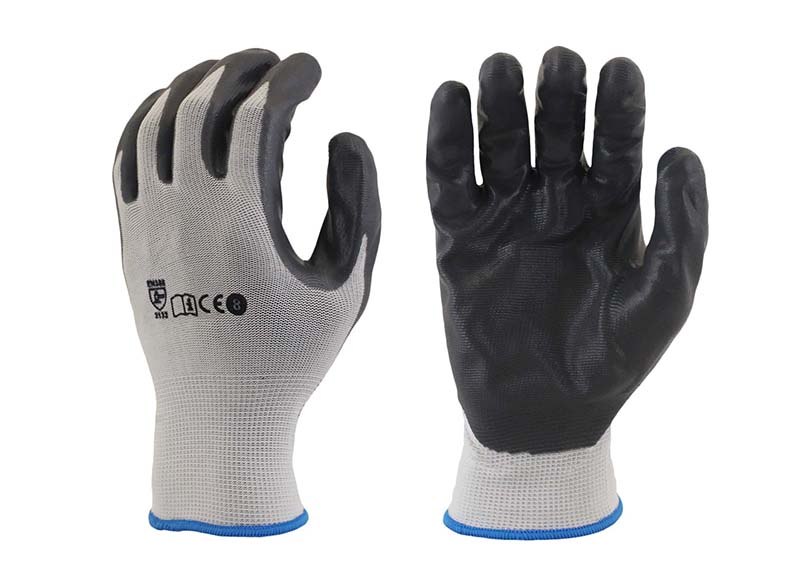 Grey Nitrile Coated Palm, White Nylon Liner [Size: S-XXL]