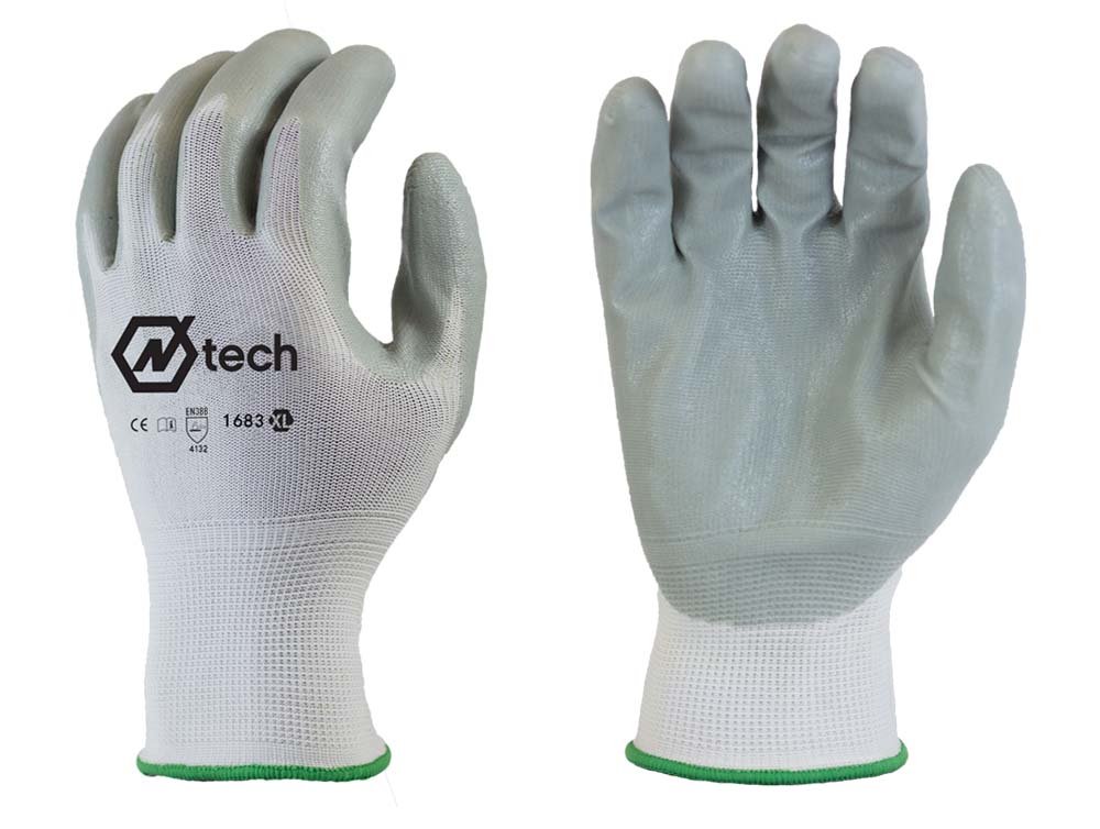 N-Tech, Grey Nitrile Coated Palm, White Nylon Liner, CE 4132 [size: S-XL]