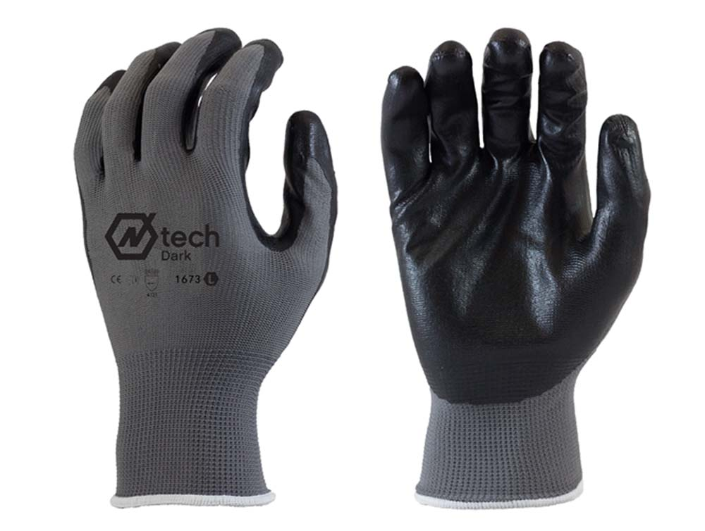 N-Tech Dark, Black Foam Nitrile Coated Palm, Grey Nylon Liner, CE 4121 [size: S-XL]
