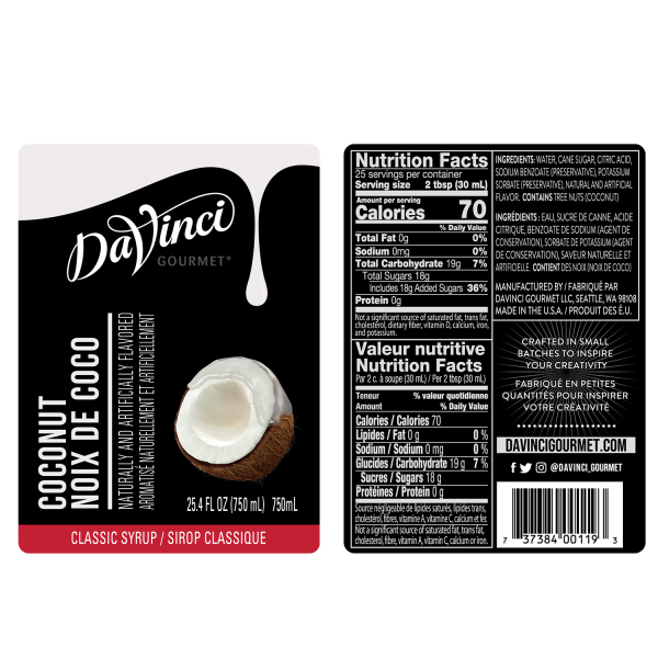 DaVinci Classic Coconut Syrup – Bottle (750mL)