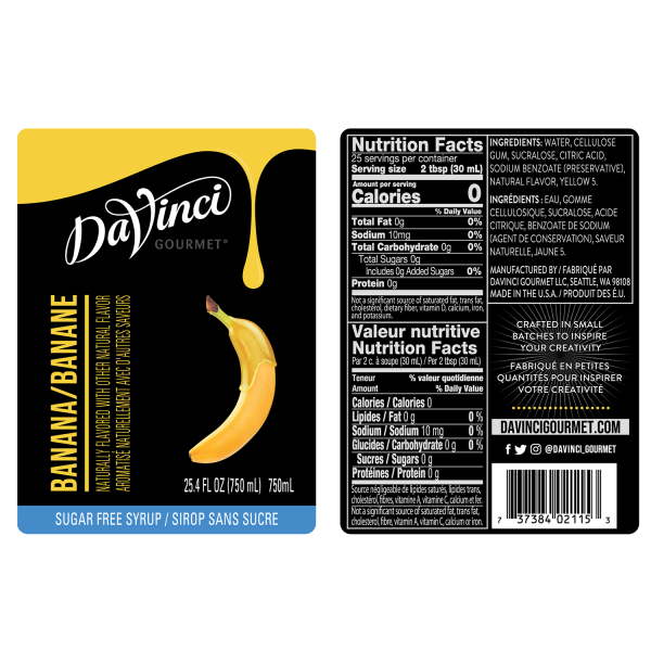 Sugar Free Banana Syrup from DaVinci Gourmet gives that delicious flavor of ripe bananas. Sweetened with SPLENDA® Brand Sweetener.