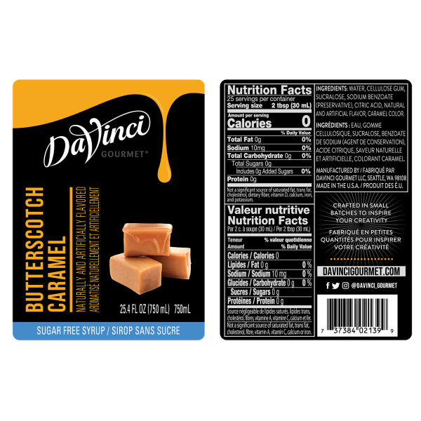 Sugar Free Butterscotch Caramel Syrup from DaVinci Gourmet is named for the hard candy made from butter and brown sugar. Sweetened with SPLENDA® Brand Sweetener.