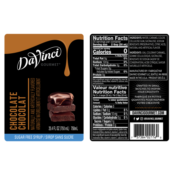 Sugar Free Chocolate Syrup from DaVinci Gourmet has the famously irresistible taste of rich chocolate. Sweetened with SPLENDA® Brand Sweetener.
