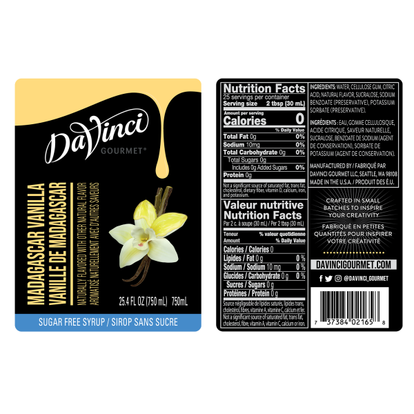 Sugar Free Madagascar Vanilla Syrup from DaVinci Gourmet is made with real, authentic Madagascar vanilla extract. Sweetened with SPLENDA® Brand Sweetener.