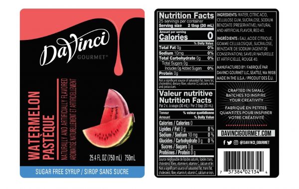 Savor the taste of sweet ripe watermelon in this deliciously fruity Sugar Free syrup from DaVinci Gourmet. With its bright hue and juicy flavor, our watermelon syrup is sure to please.