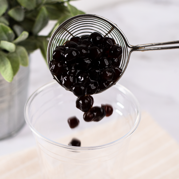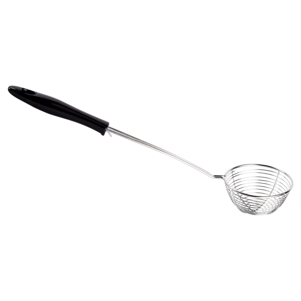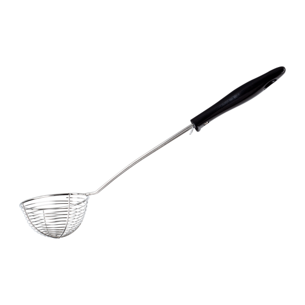 This Tapioca Scoop is a metal wire scoop with a black ABS handle cover. Used it to scoop and drain one serving of tapioca (boba) for bubble tea drinks.