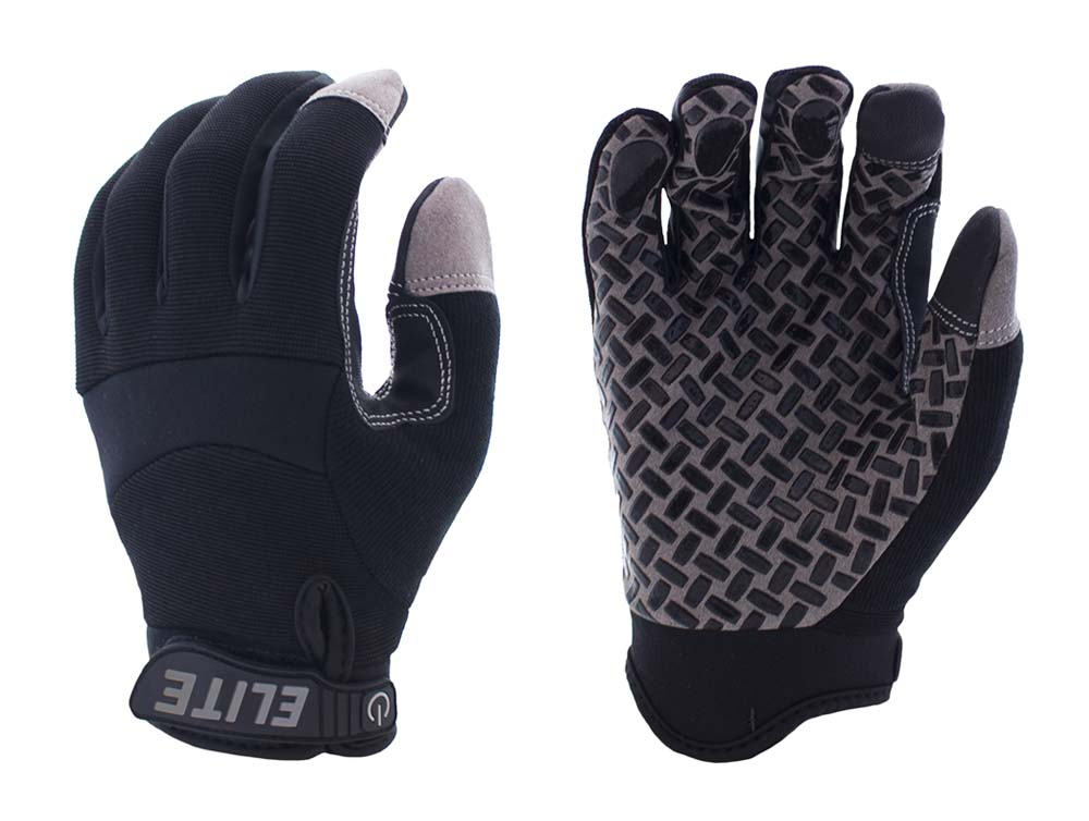 Black Elite Grip Gloves, No-Slip Grip, Spandex Back, Velcro [S-XXL]