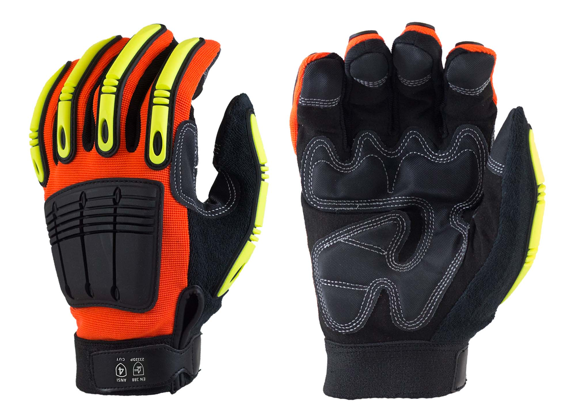 Hi-Viz Orange Nylon Spandex Back, Kevlar, TPR Padded Back of Hand, Padded Palm [size: S-XXXL]