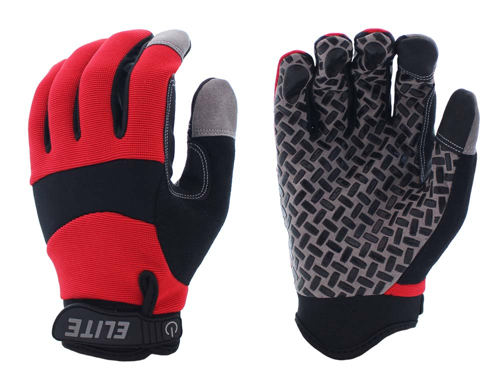 Red Elite Grip Gloves, No-Slip Grip, Spandex Back, Velcro [S-XXL]