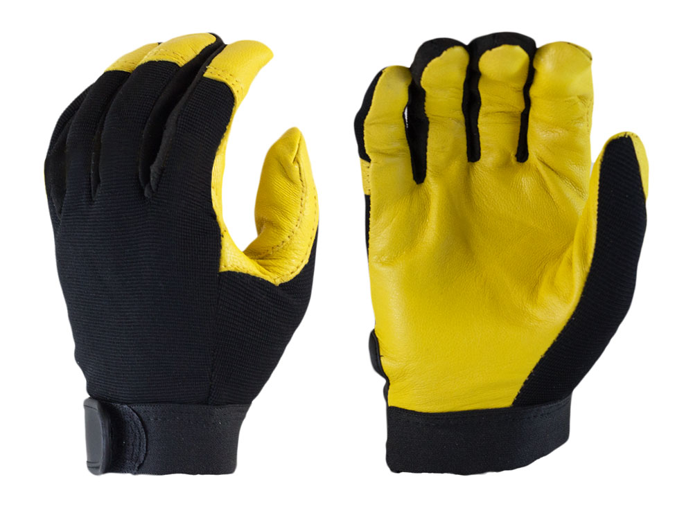 Yellow Leather Mechanics Gloves, Spandex Back, Velcro [size: S-XXL]