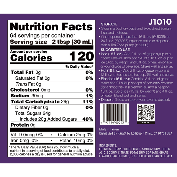 Made from real fruit ingredients, Tea Zone Grape Syrup is bursting with the luscious, sweet, full-bodied flavor of grapes fresh off the vine.