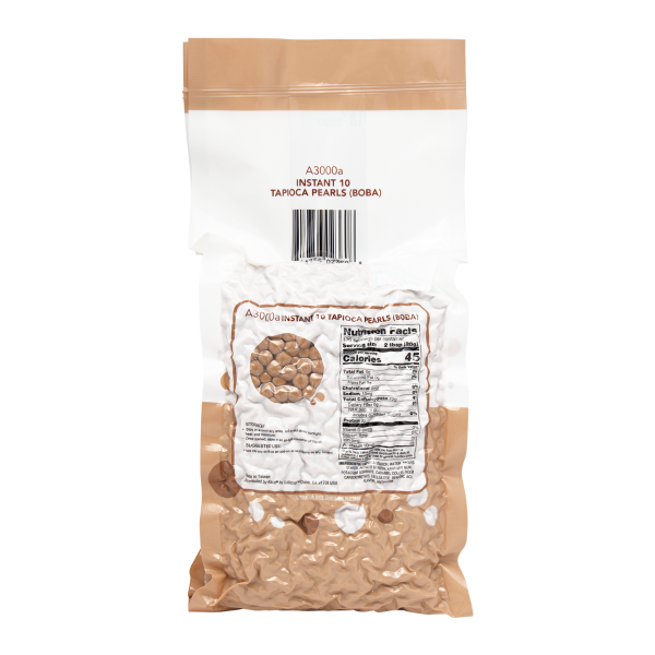 Tea Zone Instant 10 Tapioca Pearls, aka Boba, are made from tapioca starch. These are packaged as dehydrated balls that need to be boiled in water. The boba balls usually soak in brown sugar syrup to give them their signature sweetness. Unlike original boba, Instant Tapioca Pearls are cooked in a fraction of the time! Ready to serve in just 25 minutes.