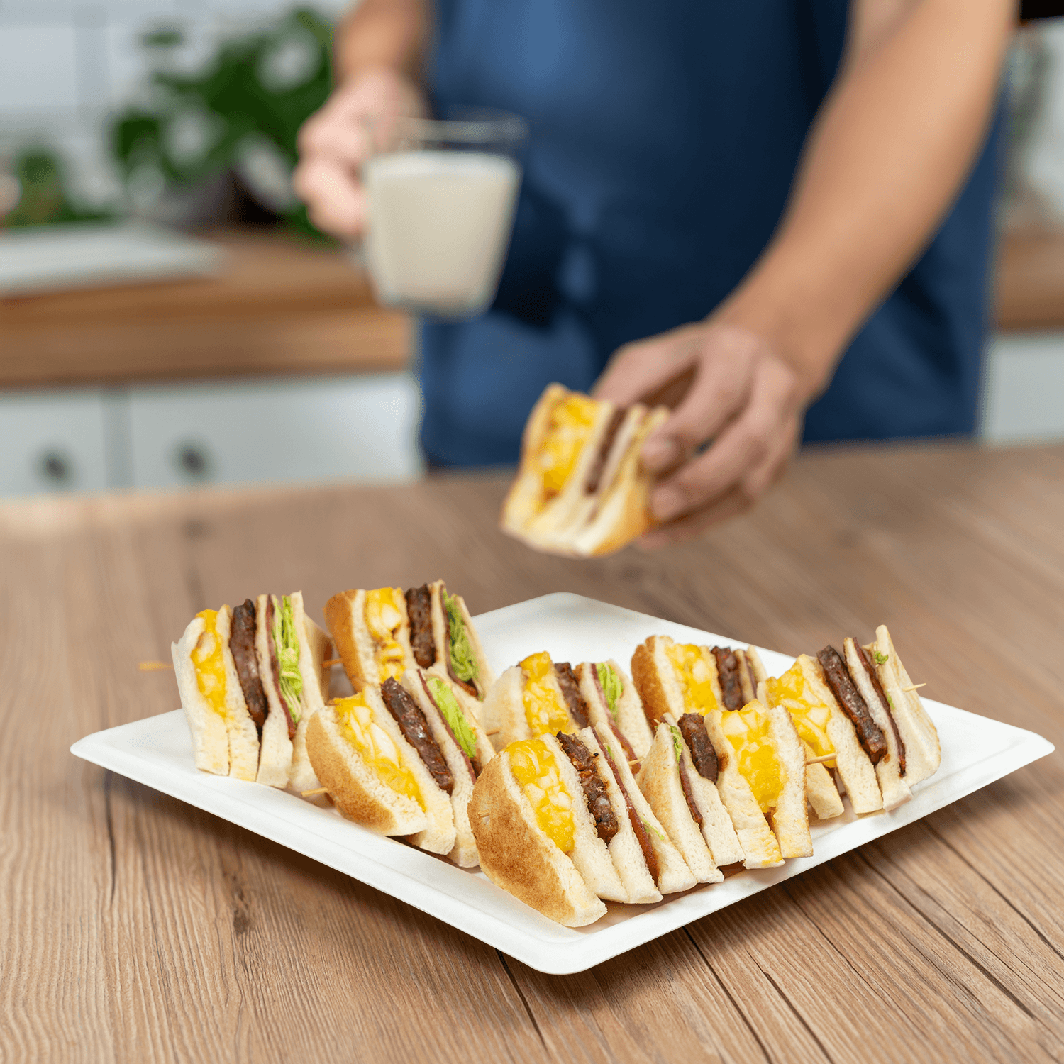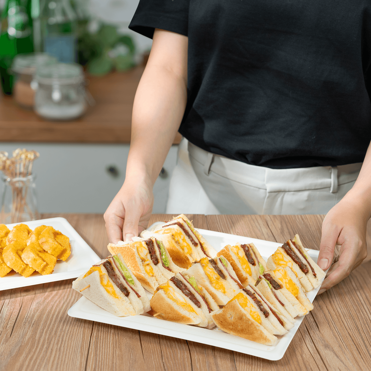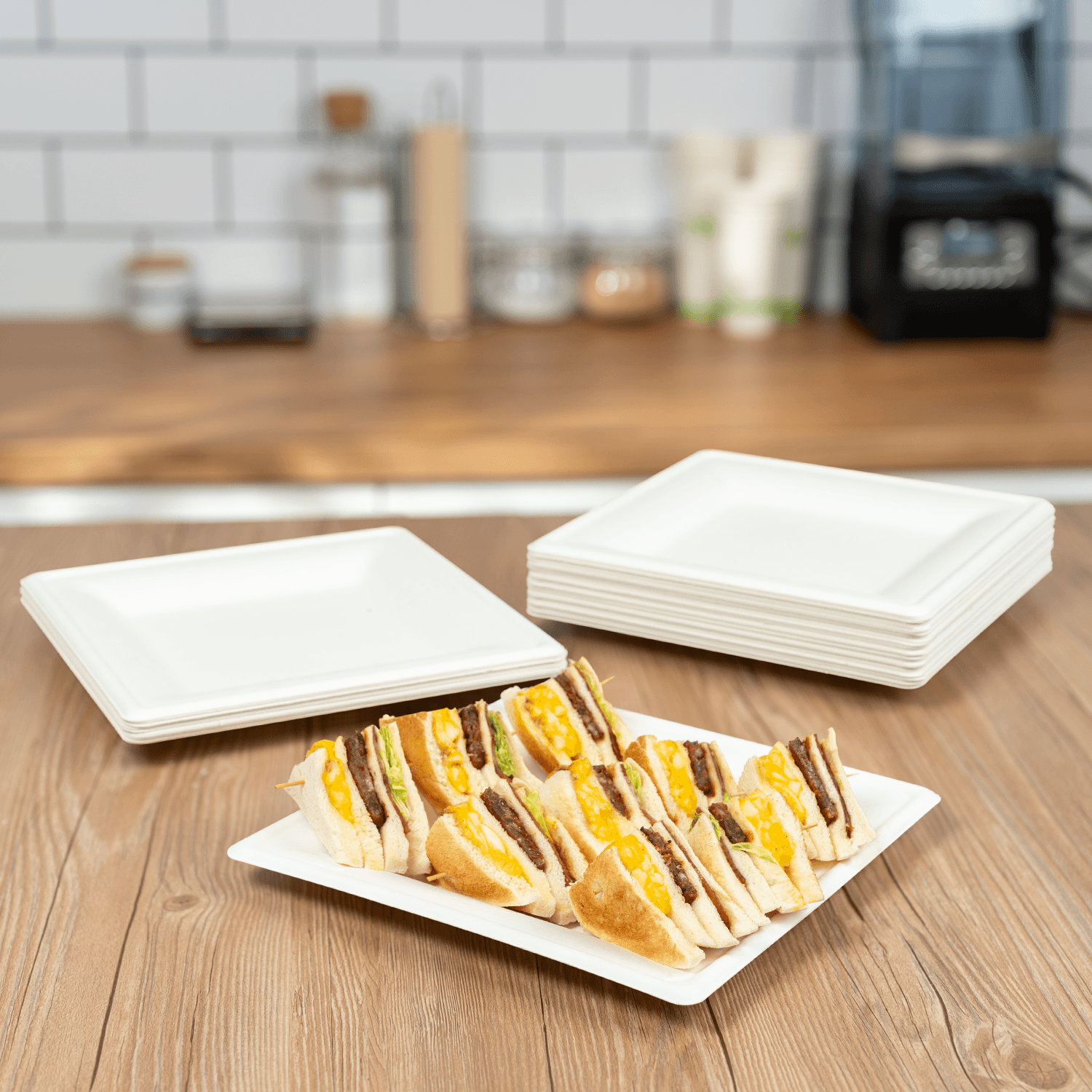 These square plates expertly cater to the growing demand for stylish and reliable takeout and food delivery. Their unique shape provides a secure and elegant way to package and present your delectable dishes, offering ample surface area without the clutter of compartments. They are also perfect for hosting sophisticated events, be it weddings, parties, or corporate gatherings, where the square design adds a bold touch of modern elegance to the occasion. Embrace the clean, striking beauty of Molded Fiber plates and make a bold statement in favor of sustainability and superior style.