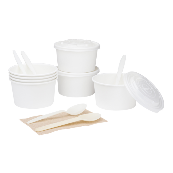 Karat Earth Paper Food Containers are made from renewable resources and designed specifically for use with hot or cold food. These eco-friendly paper food containers are great for ice cream, yogurt, gelato, noodles, and salad.