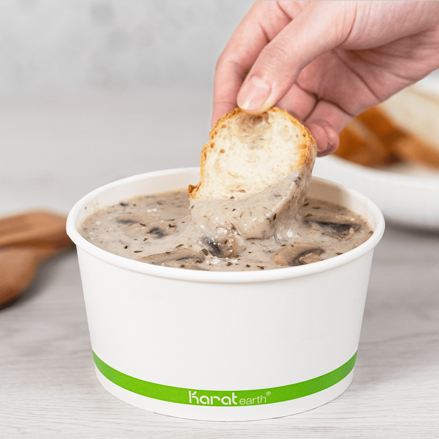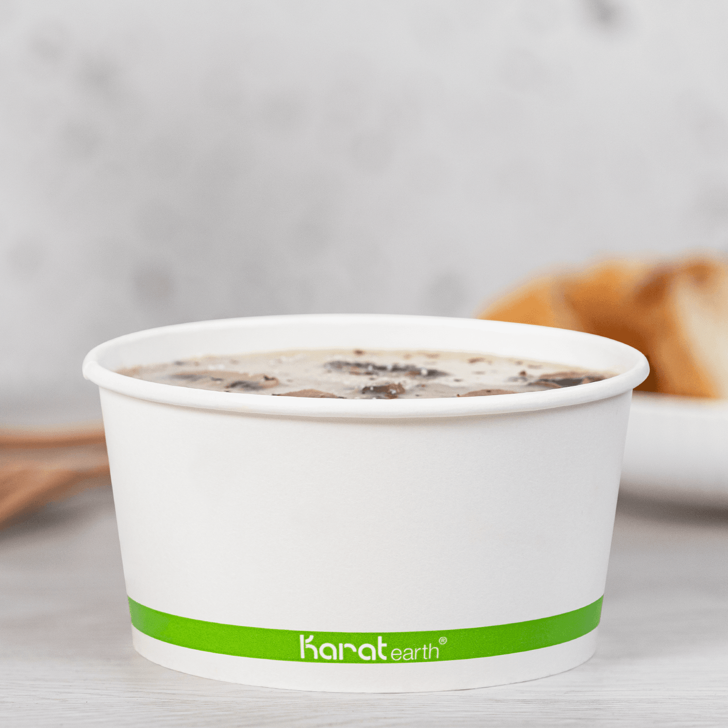 Karat Earth paper food containers are designed for both hot and cold use, these versatile containers are ideal for any occasion, whether you’re serving ice cream, soup, or a full meal. These eco-friendly take-out containers are made from renewable resources and are BPI® certified, making them compostable in commercial facilities. This not only helps reduce your environmental footprint but also aligns with the growing demand for sustainable packaging solutions.
