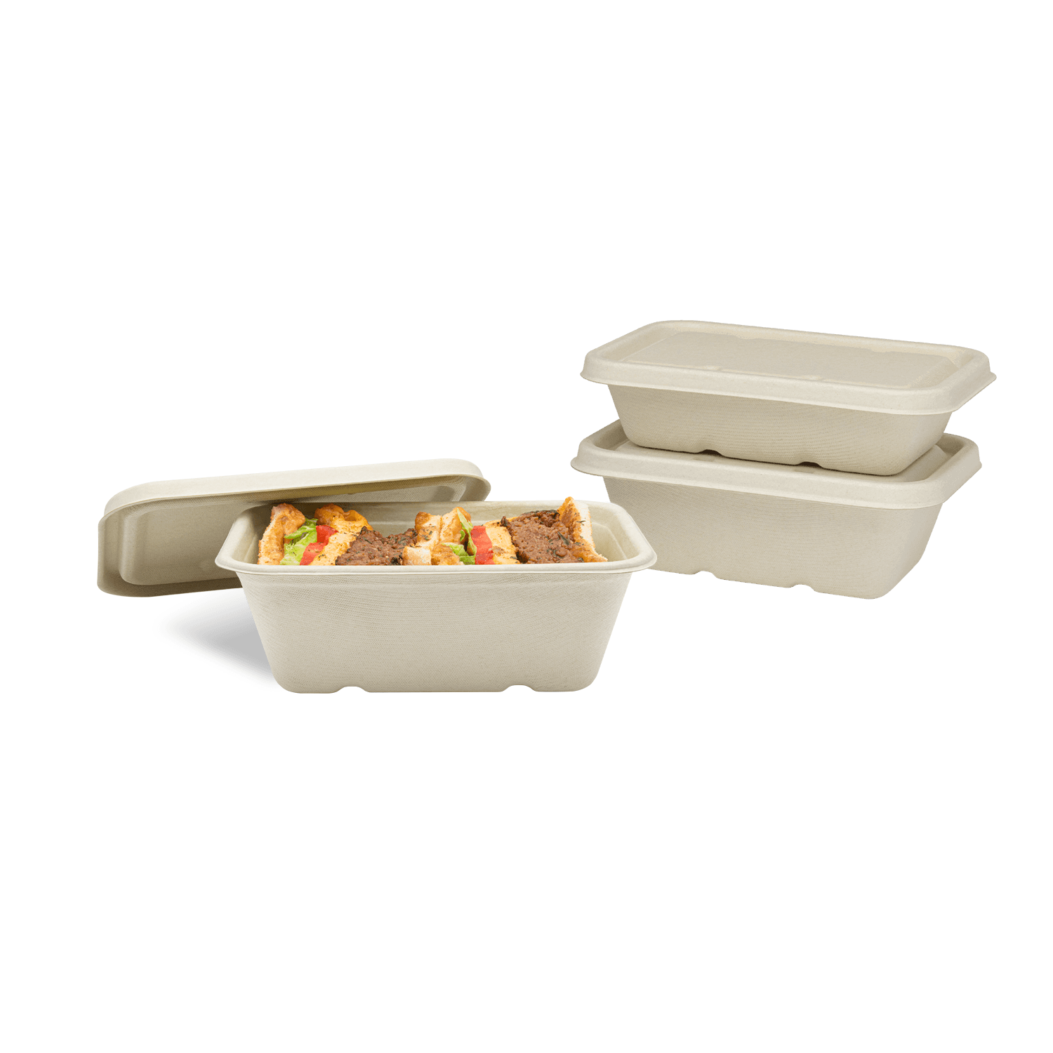 Karat Earth Bagasse 24 oz to go boxes have an available matching lid #KE-BTCL01N (sold separately) so restaurants can prepare pack and go meals or delivery orders safely for transit.