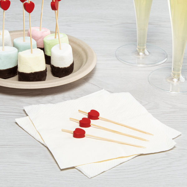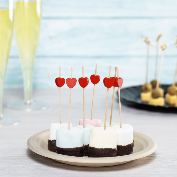 Your patrons will Love these Karat Earth 3.5″ Bamboo Red Heart Picks. These sturdy biodegradable mini skewers tie in wonderfully with love-themed cocktails, Valentine’s Day food platters, wedding appetizer plates, and other events! Showcase love with this stylish red heart-shaped design that also provides a flat grip. Karat Earth Bamboo Red Heart Picks are made from food safe bamboo and makes a bold statement when presenting your bite-size foods.
