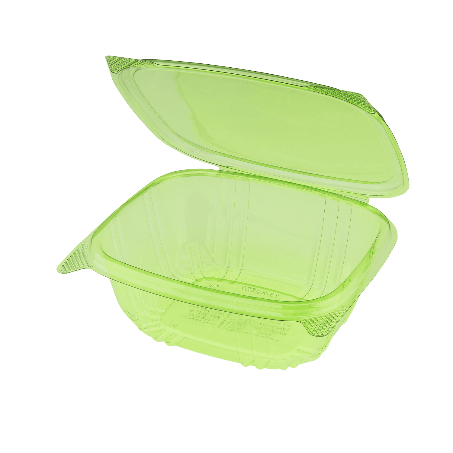 Made from renewable plant-based materials, the PLA hinged containers offer a robust alternative to plastic clamshell food containers without sacrificing strength or functionality. The secure, easy-to-handle design with a one-piece attached lid prevents leaks and lost lids, making these take-out containers ideal for busy takeout and delivery services.Â
