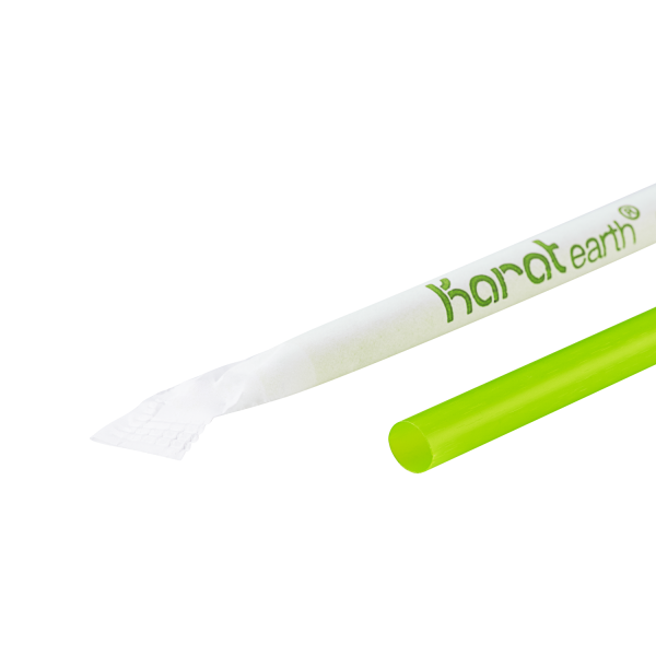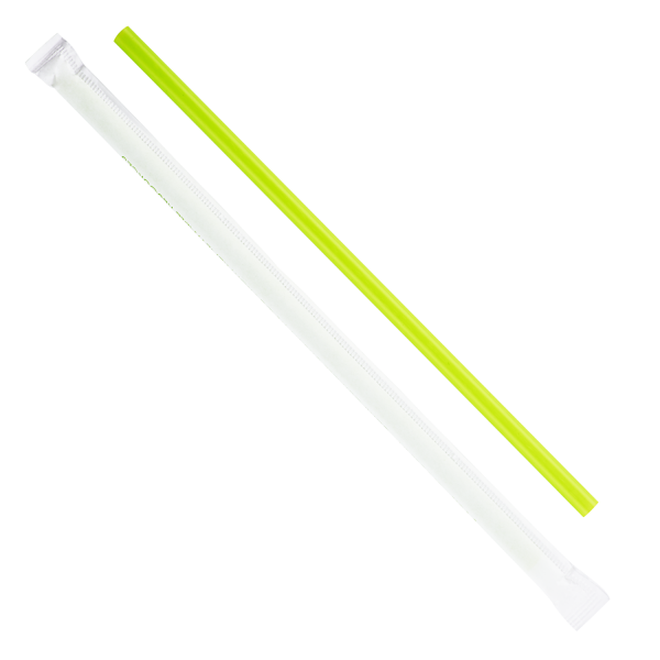 Karat Earth Giant PLA Straws are now available in green! These straws are made from PLA which is a renewable resource that helps cut down on straw waste. They are individually wrapped in paper.