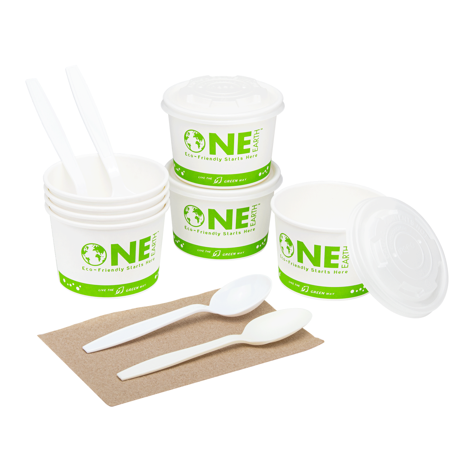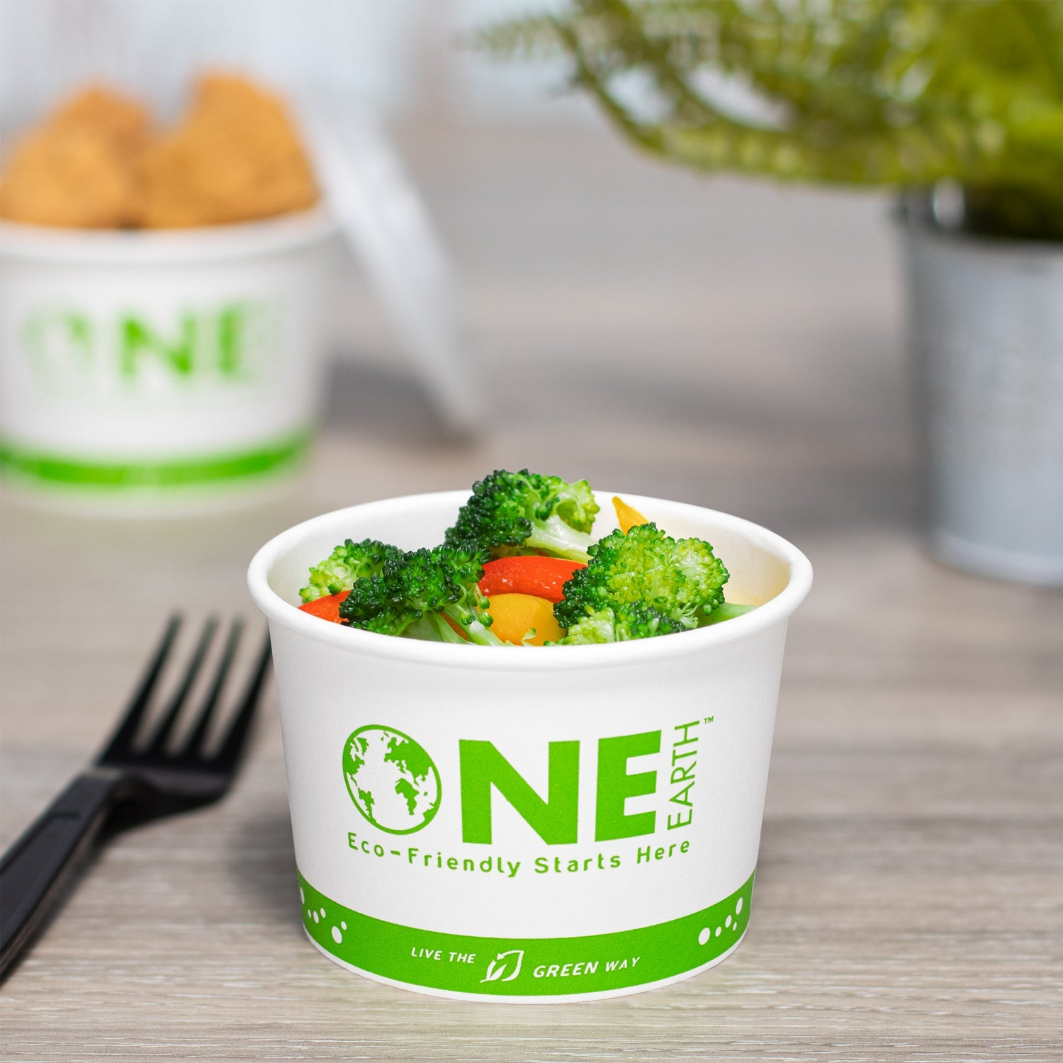 Karat Earth Paper Food Containers are made from renewable resources and designed specifically for use with hot or cold food. These eco-friendly paper food containers are great for ice cream, yogurt, gelato, noodles, and salad. Food containers come with Karat Earth’s generic “One Cup, One Earth, One Choice” print.