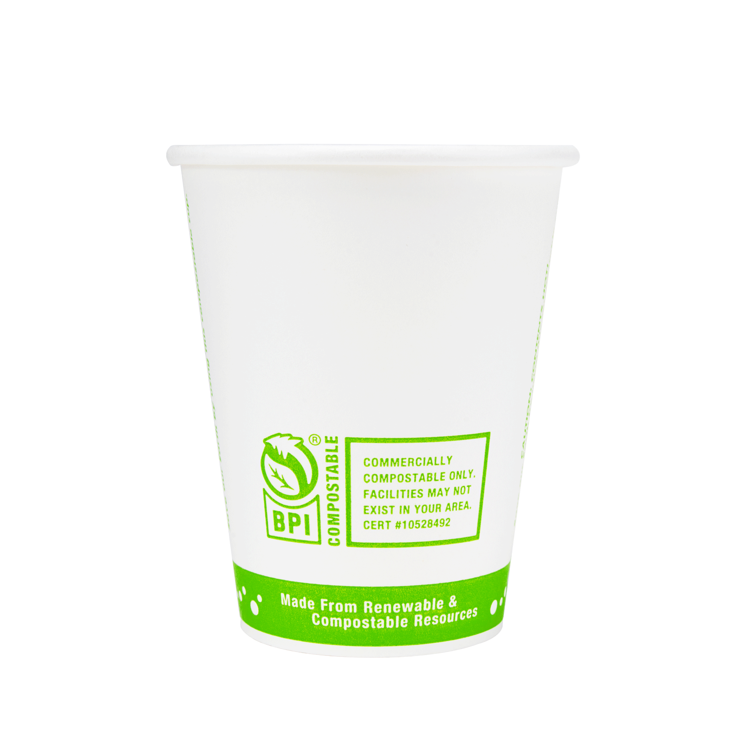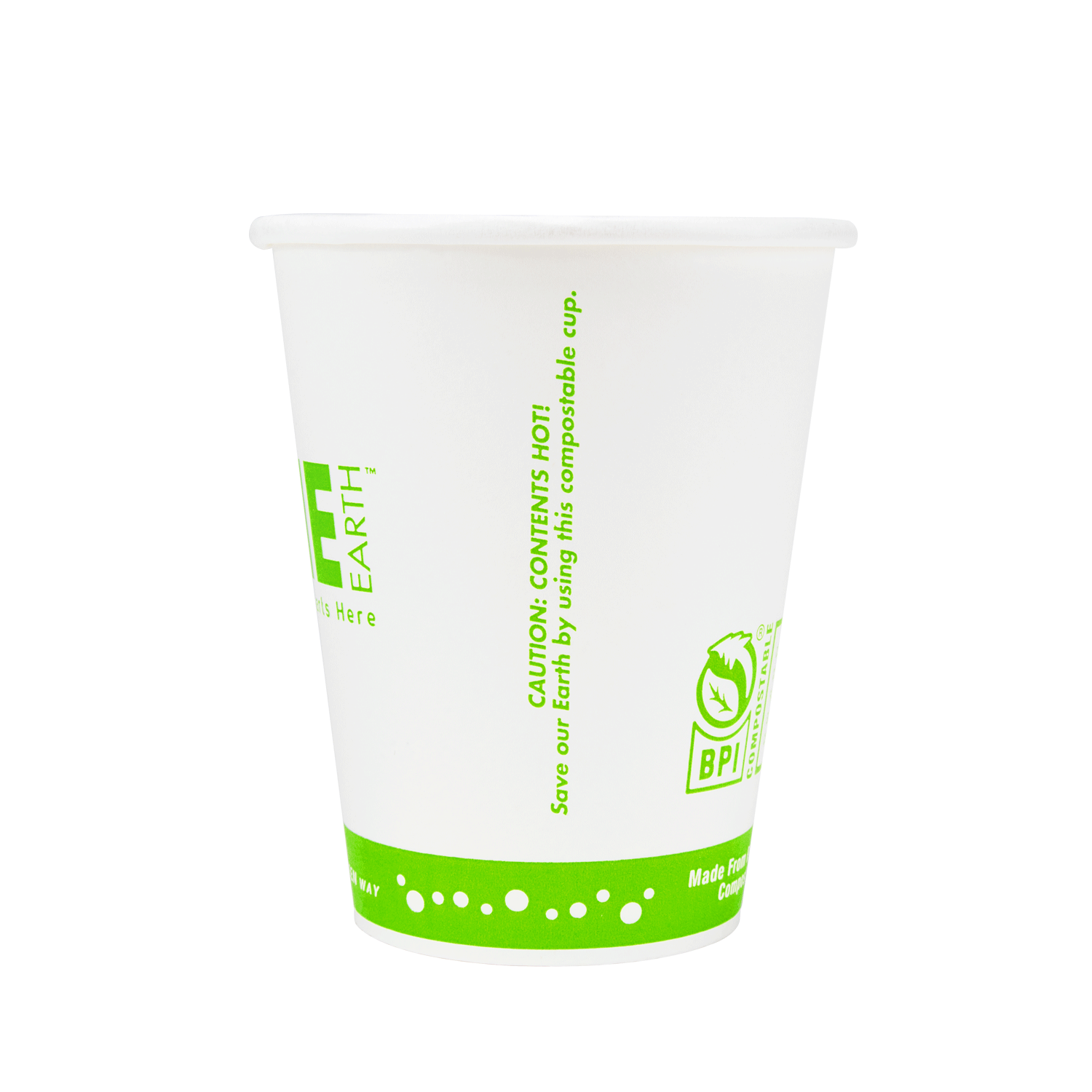 Karat Earth compostable paper hot cups are designed for hot beverages and feature our Karat Earth “One Cup, One Earth, One Choice” stock print. These hot cups feature a PLA lining which makes them compostable and are BPI® certified compostable in industrial facilities.