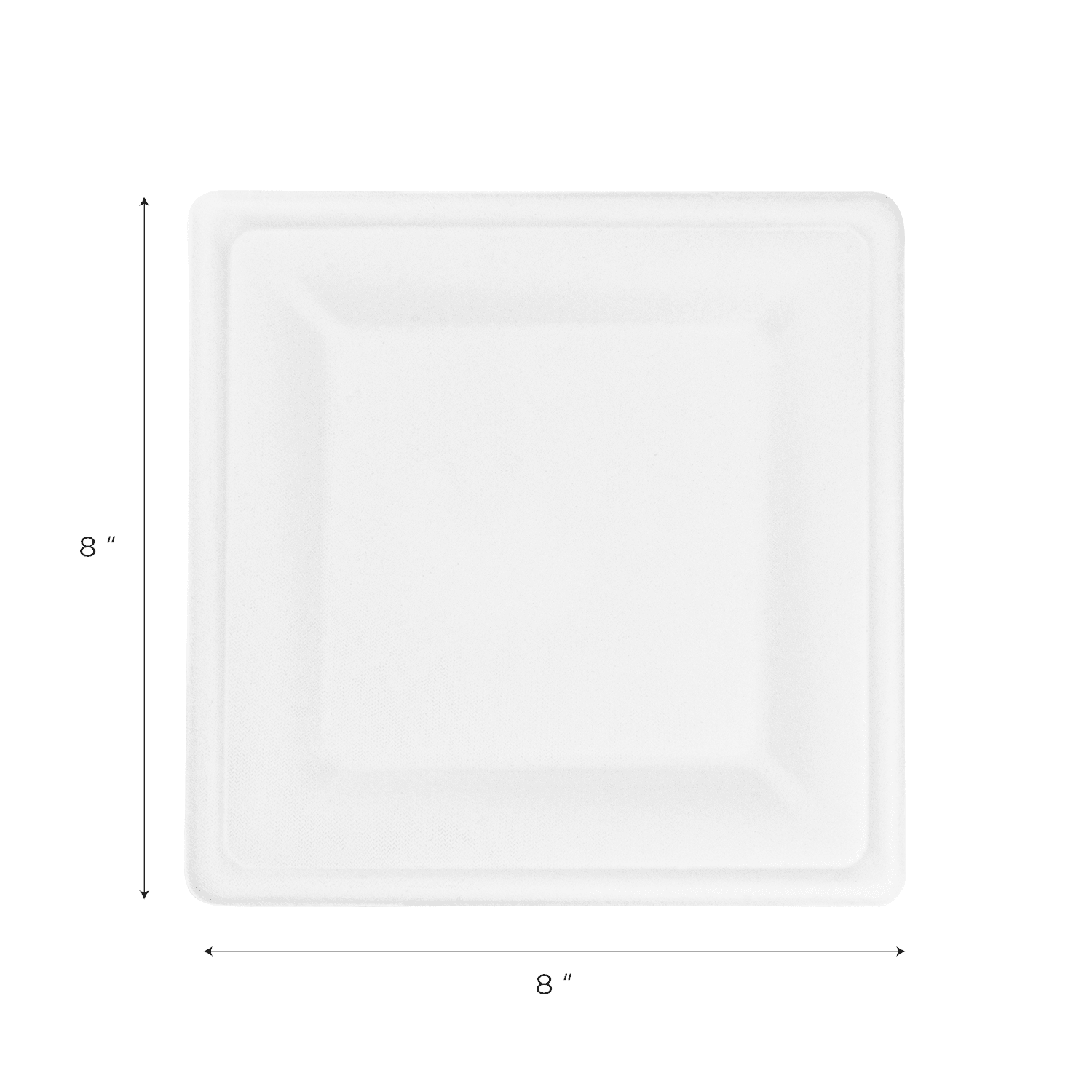 Karat Earth 8”x 8” Molded Fiber Square Plates, PFAS Free, White – 500 pcs