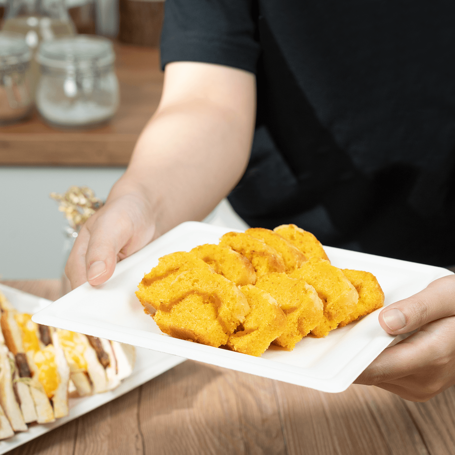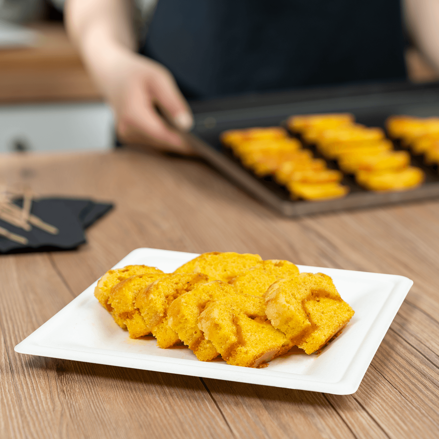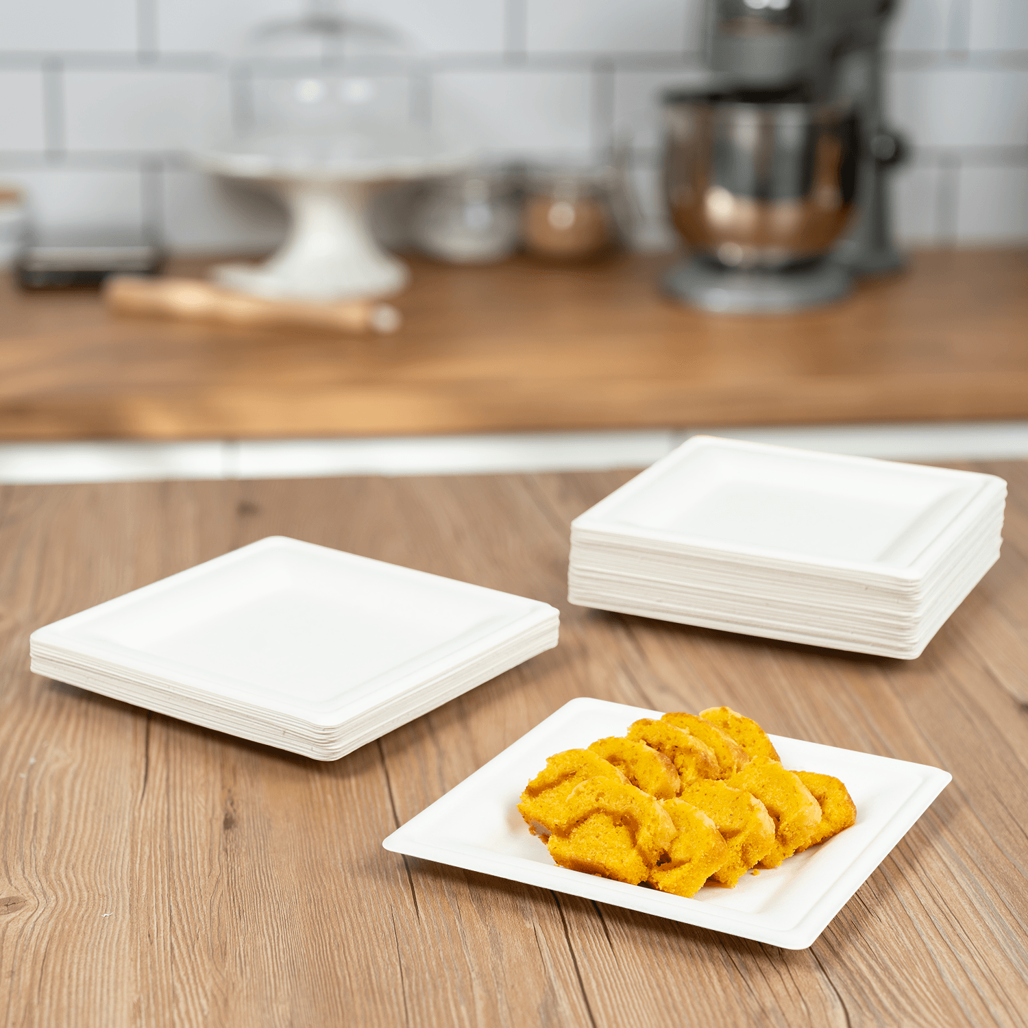 These square plates expertly cater to the growing demand for stylish and reliable takeout and food delivery. Their unique shape provides a secure and elegant way to package and present your delectable dishes, offering ample surface area without the clutter of compartments. They are also perfect for hosting sophisticated events, be it weddings, parties, or corporate gatherings, where the square design adds a bold touch of modern elegance to the occasion. Embrace the clean, striking beauty of Molded Fiber plates and make a bold statement in favor of sustainability and superior style.