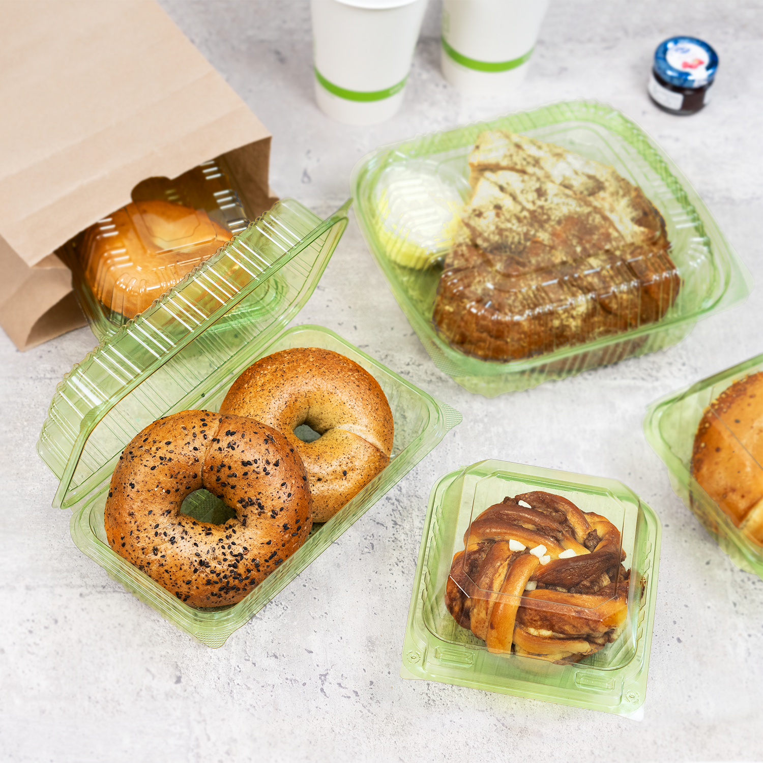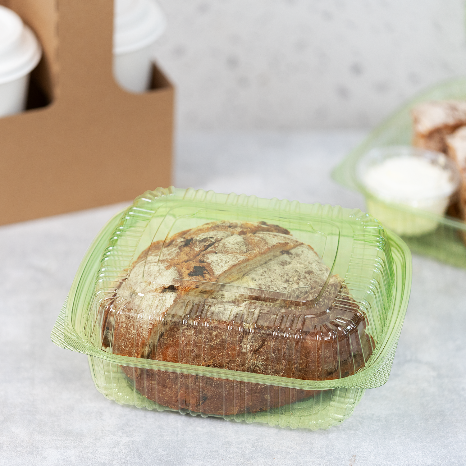 These versatile hinged containers are perfect for a wide range of meals, from hearty pasta and fresh sandwiches to full entrées. The one-piece, attached-lid construction offers hassle-free use, preventing lost or misplaced lids and making them ideal for busy takeout and delivery services. Available in multiple sizes, Karat Earth® PLA hinged containers cater to various portion needs while providing a practical and sustainable way to serve food on the go.