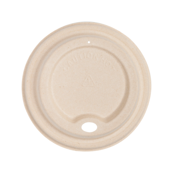 You have a compostable hot cup, biodegradable sleeve, and now a plastic-free lid to go with it. Complete your eco-friendly coffee supplies order with Karat Earth bagasse dome lid for 10-24oz hot cups. This coffee cup lid is made from an unbleached plant-based material that gives it a natural earthy look. It is designed with a vent hole for smooth drink flow and a caution hot warning label, including a danger symbol, to ensure customers drink with care.