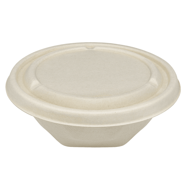 This Karat Earth Bagasse Flat Lid perfectly fits atop any 16-24 oz Bagasse Take out Bowl.