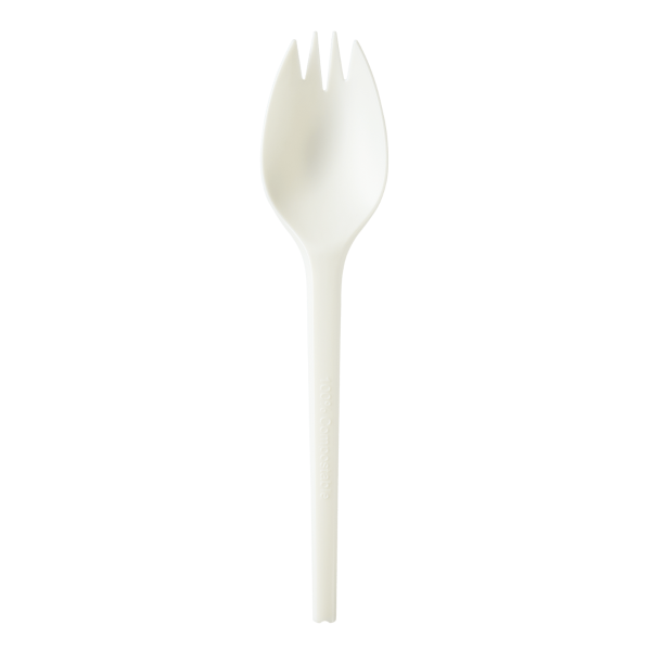 The Karat Earth Medium-Heavy Weight CPLA Spork is stronger than PLA utensils and made from a compostable material. Your customers can enjoy a bowl of chicken and rice then simply toss the spork into a compost bin when finished. CPLA Sporks allow you to provide a quality utensil while reducing your impact on the environment. Make the switch to eco-friendly utensils today!