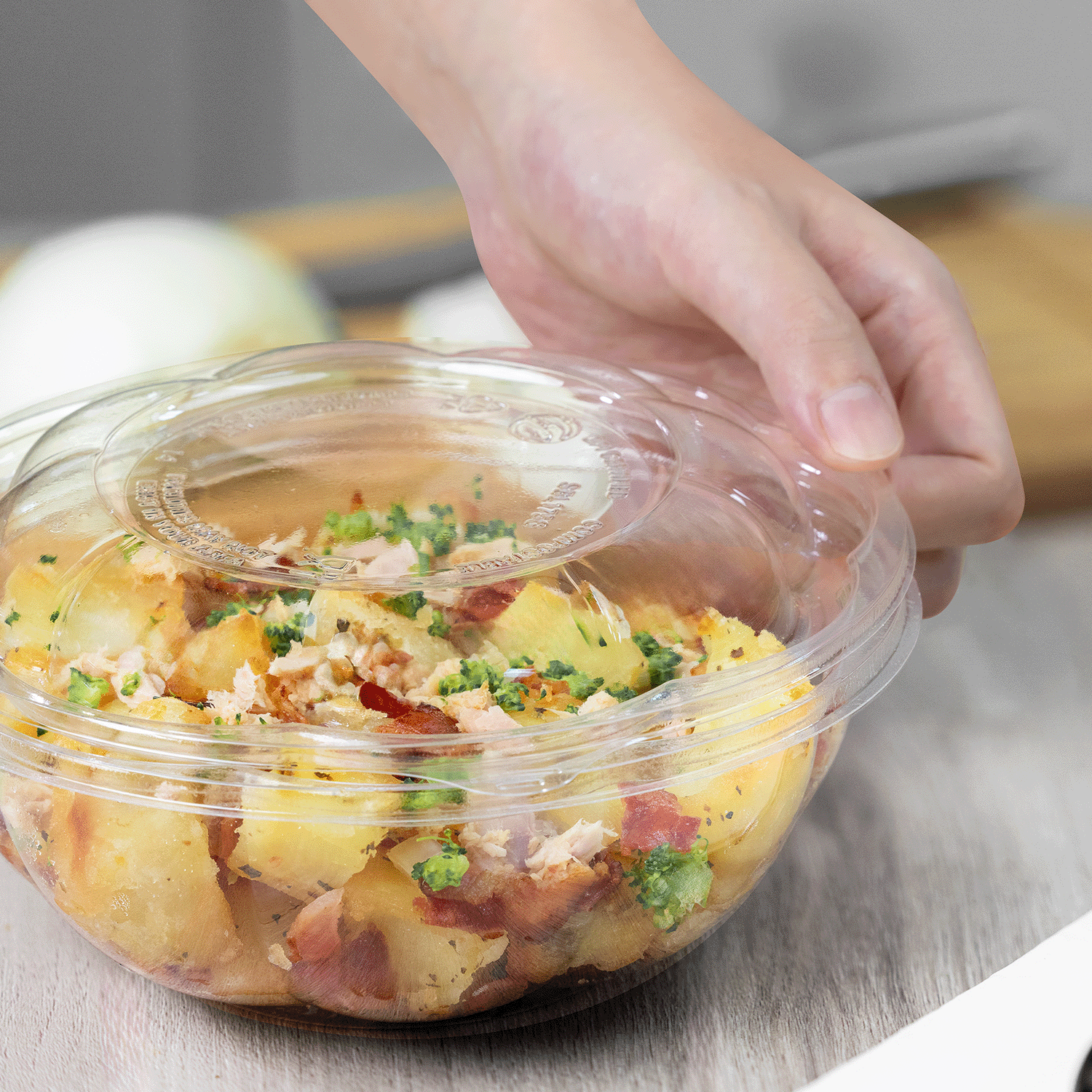 Discover the perfect blend of convenience and style with Karat Earth’s BPI-certified PLA clear plastic salad bowls. These disposable salad bowls are available in various sizes—18, 24, 32, and 48 oz—offering versatility for any occasion. Designed with a unique petal shape, each bowl provides an elegant presentation, whether you’re hosting a party or simply packing a salad container for lunch. Although lids are sold separately, their compatibility with all bowl sizes ensures a snug fit to retain freshness and prevent spills.