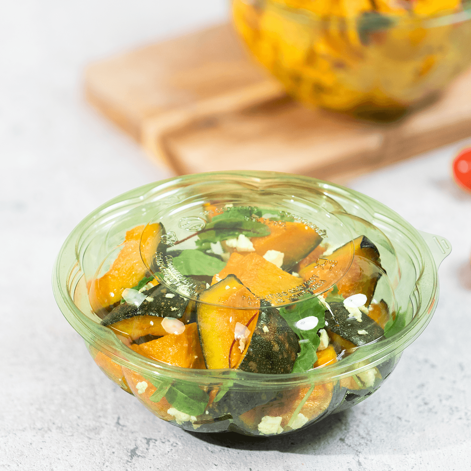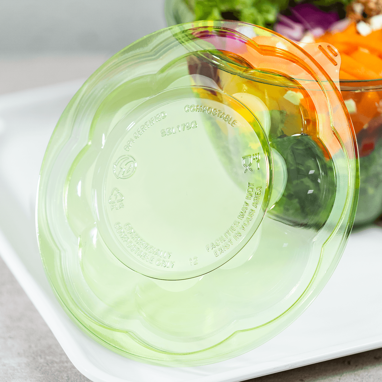Karat PLA Dome Lid, the perfect complement to our 18-48oz PLA Salad Container, seamlessly integrates with its matching container, providing an eco-conscious and professional solution for your take-out, salad bars, and retail needs. This environmentally responsible lid is fully compostable in commercial facilities, helping reduce your business’s carbon footprint while maintaining superior performance. The dome design provides ample clearance for generous portions and fresh toppings, ensuring your salads and prepared foods are presented beautifully.