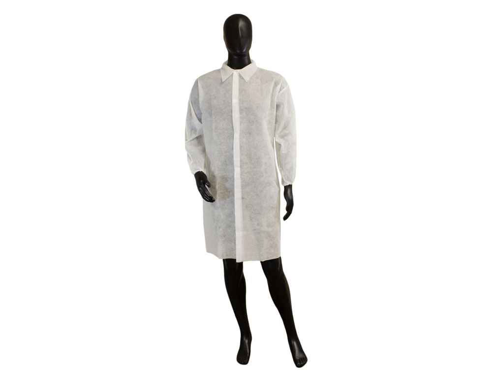 White Polypropylene Lab Coat, Collar, Velcro Closure, No Pockets, 10/bag [size: S-5X]