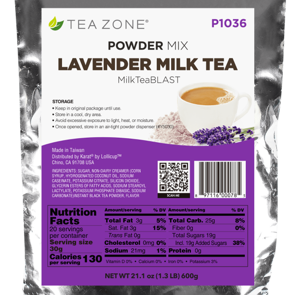 Lavender is known for its strong floral aroma and beautiful violet color. The scent of Lavender brings a sense of refresh and calm to many people. Tea Zone Lavender Milk Tea Powder is a premium instant powder mix to be used on milk teas, smoothies, coffee, desserts, and breads to give a delightful and floral flavor.