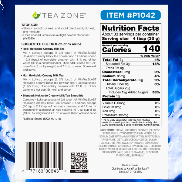 Tea Zone MilkTeaBLAST Hokkaido instant milk tea is a delicious creamy beverage, similar to the traditional milk tea flavor. The Hokkaido Milk Tea has Hokkaido royal milk in it, which makes the Assam tea smooth and creamy.