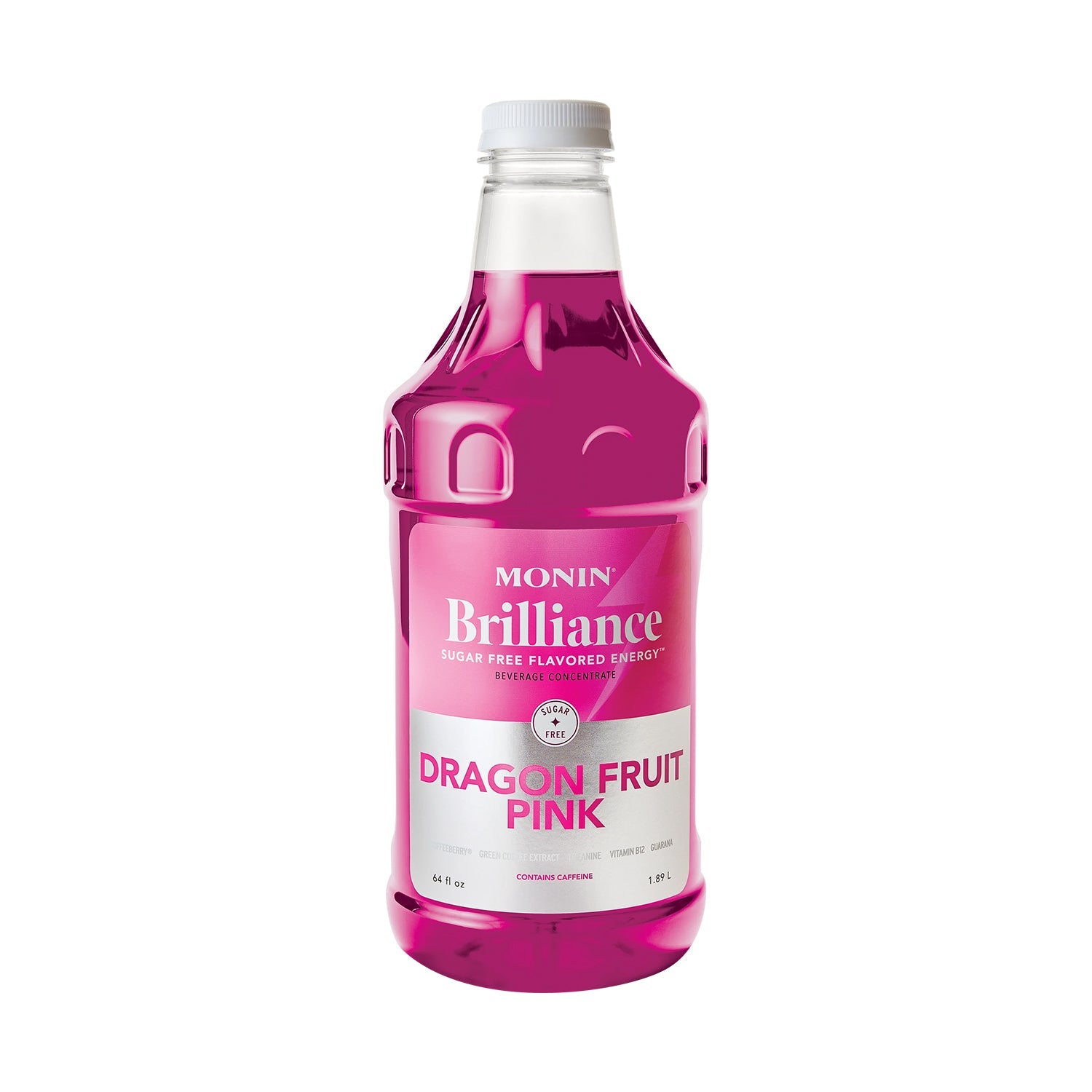 Step up your energy game with Monin Brilliance Sugar Free Dragon Fruit Pink Energy! This refreshing drink is packed with the natural caffeine of Coffeeberry® Energy, green coffee extract, L-theanine, vitamin B12, and guarana. Experience a delightful pink tropical flavor and fruity aroma in every 1-oz. serving (2 pumps) without any added sugar. Embrace the energizing power of dragon fruit, with hints of tropical pear, raspberry, and kiwi. Your taste buds and energy levels will thank you.