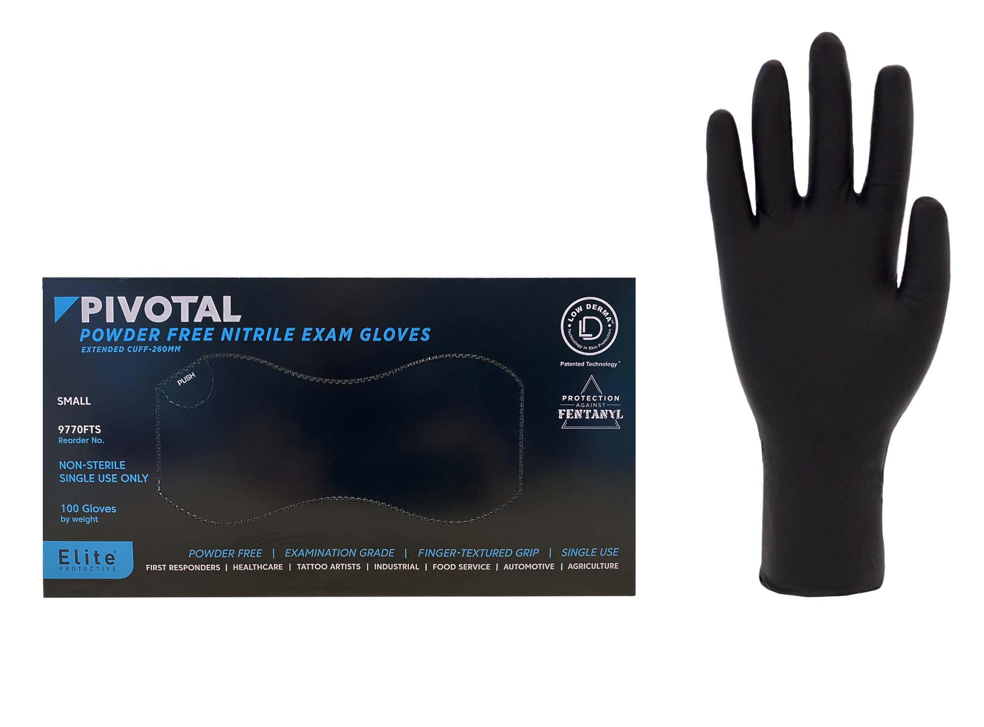 Elite Pivotal, Black, Exam Grade, Powder-Free, Extended Cuff, Textured, 100 gloves/box [size: S-XL]
