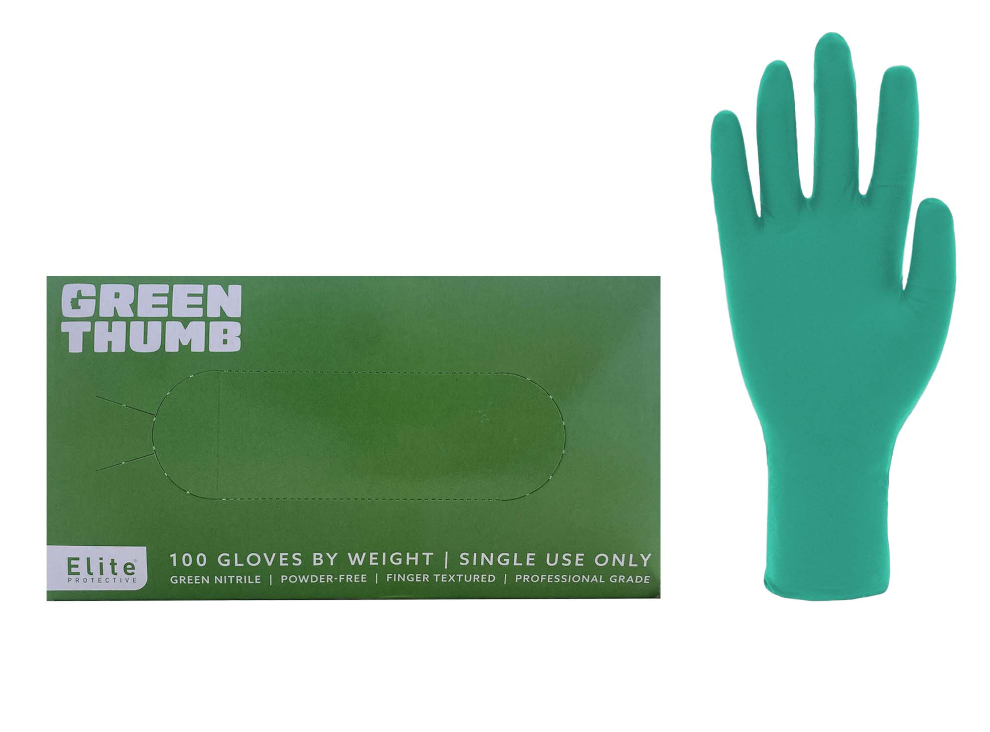 Elite Green Thumb, Green, Industrial Grade, Powder-Free, Finger Textured, 100 gloves/box [size: S-XL]