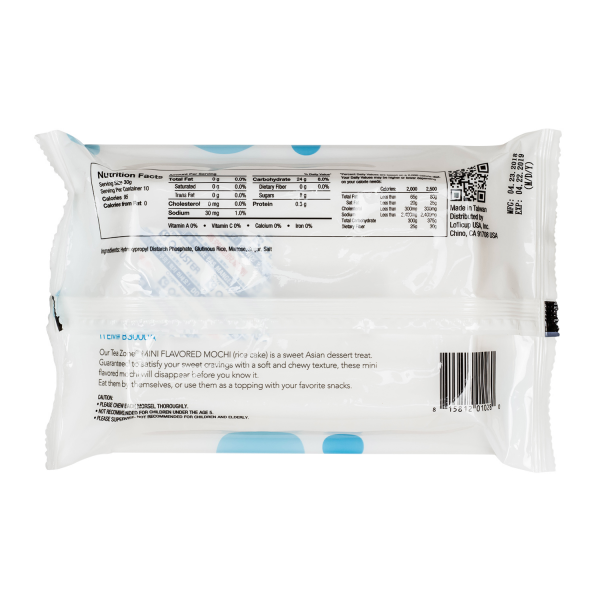Mochi is a traditional Japanese rice cake snack enjoyed throughout several cultures and nations. Tea Zone Original Mini Mochi is individually coated with powder to prevent them from sticking to one another, securely sealed in a tray and bag, and ready to serve. Recommended to use within 24 hours after opening and product can last 3-5 days if re-sealed air tight and stored in a dry and cool space.