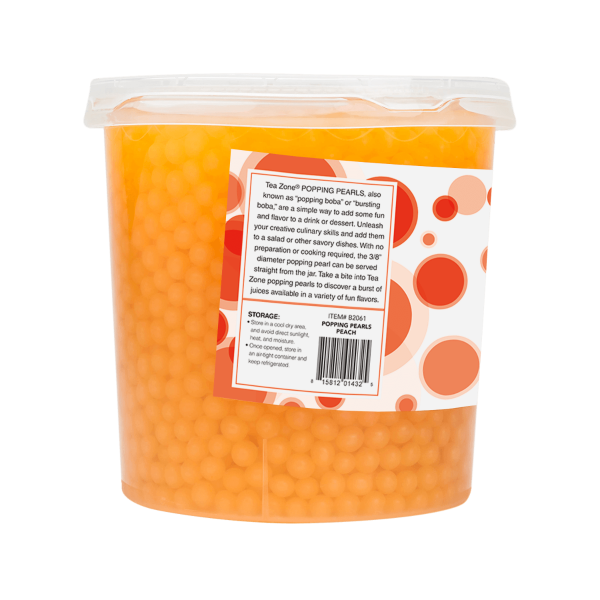 Add a spoonful of delicious sweet Tea Zone Peach Popping Pearls to your tea, cocktail, or dessert. Each bite is an explosion of juices that will make your water.Â