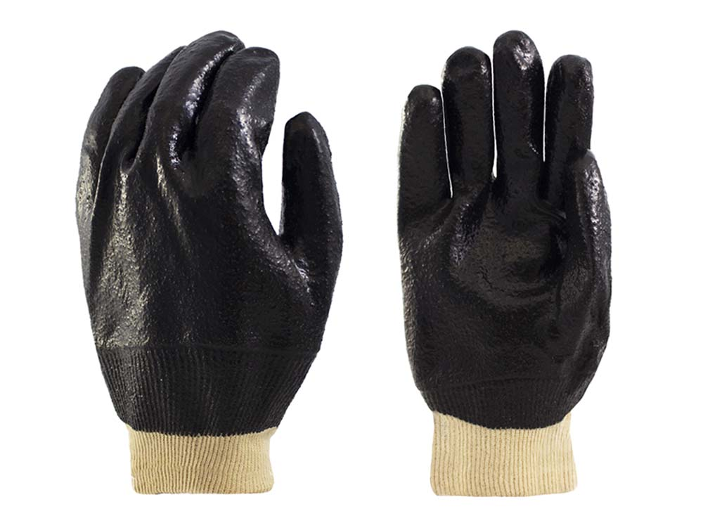 PVC Coated Gloves Black, Single Dipped, Interlock Lined
