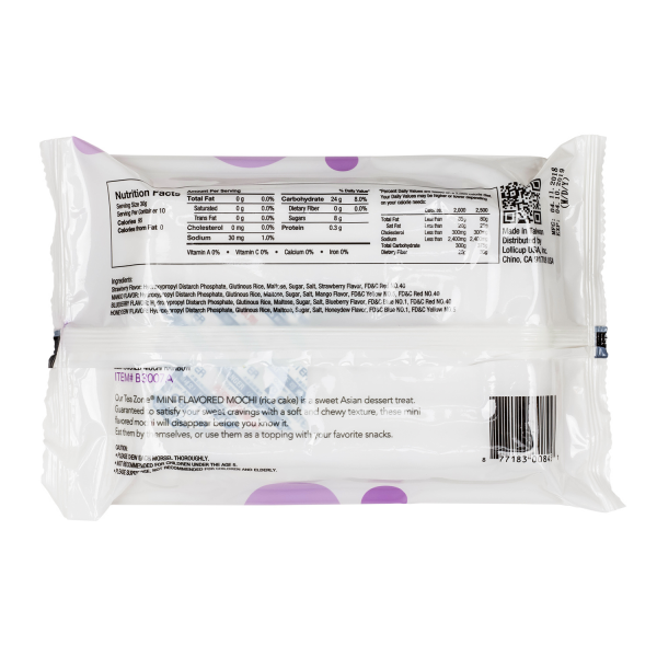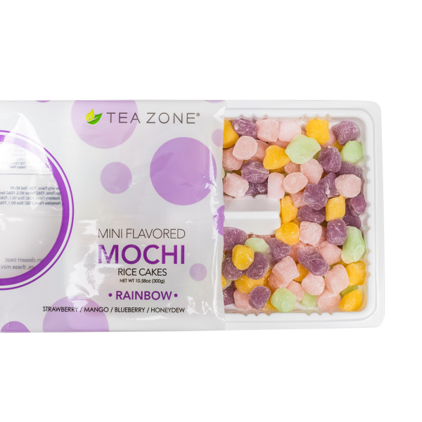 Tea Zone Rainbow Mini Mochi is a traditional Japanese rice cake with a chewy texture. It is delicious on its own as a snack or it can make the perfect topping for frozen yogurt and other desserts.