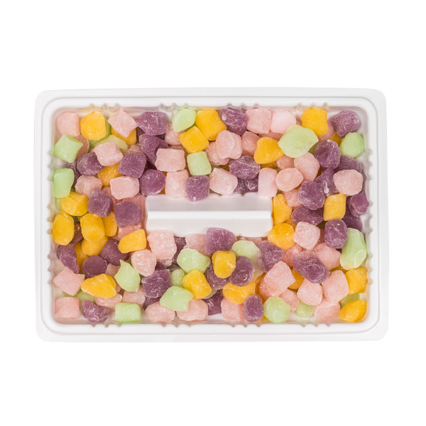 This Rainbow Mini Mochi is a tasty combination of strawberry, mango, blueberry, and honeydew flavors. Each bite-sized piece is individually coated in potato starch to prevent the pieces from sticking together. With a soft and chewy texture, this delicious mochi is guaranteed to satisfy your sweet cravings. Eat them by themselves or enjoy them as a topping with your frozen yogurt or desserts!
